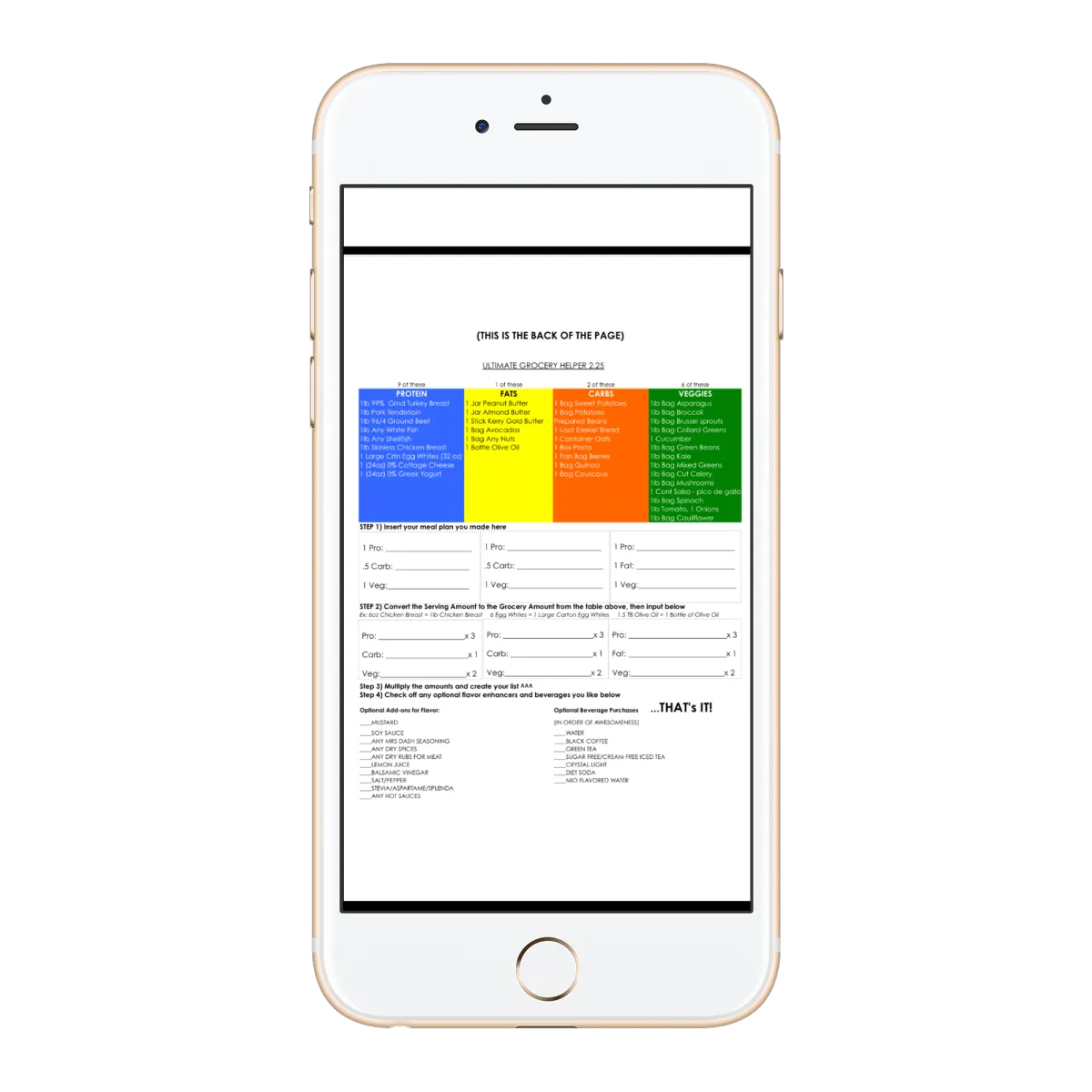 We will sit down with you and map out your exact grocery list so you know what to buy at the grocery store, and leave nothing to guesswork. Average person spends ~$45/week on groceries for 21 meals at Walmart or Trader Joe's. Our process will cut down on your time in the grocery store with most people getting in and out in under 15min.