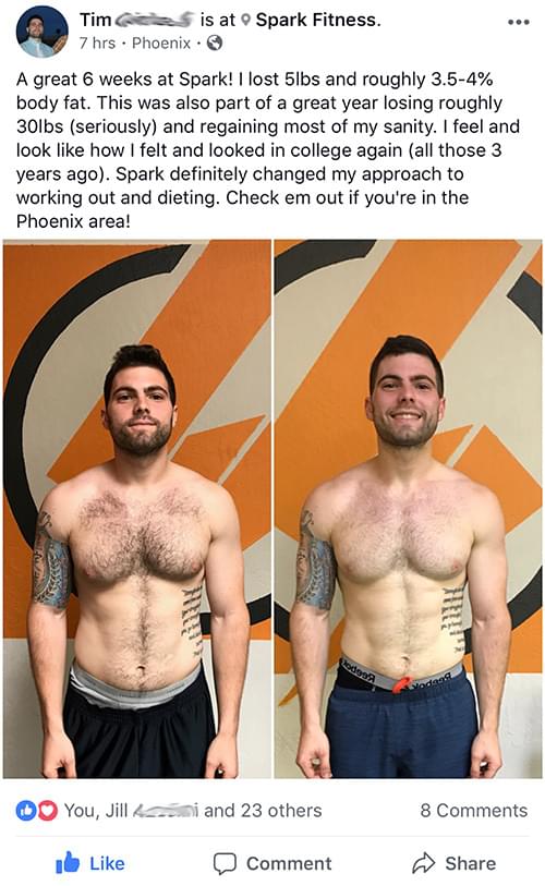Not only will you have us when you are in the gym working out, but you will be assigned to one of four Spark coach Teams. Whenever you need for help, tips, advice, or just someone to give you some extra encouragement. We are here to help you succeed. They will also CHECK-IN WEEKLY to congratulate you on your success and keep you on track.